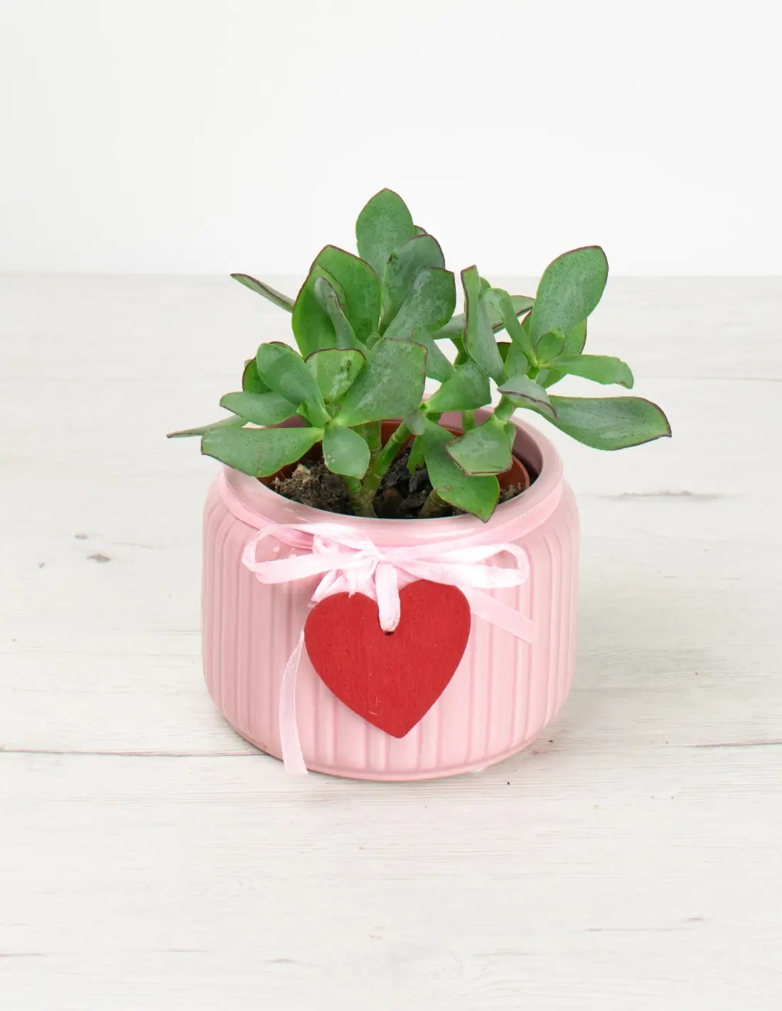 Decoración Botánica: Cubremacetas con Lazo y Corazón de Madera