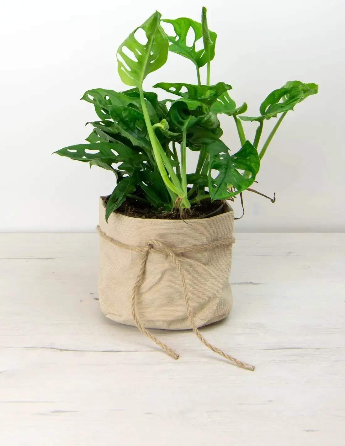 Cordón de Yute Decorativo: Un cordón de yute cuidadosamente colocado alrededor del cubremacetas añade un encanto rústico que realza la decoración de cualquier espacio.