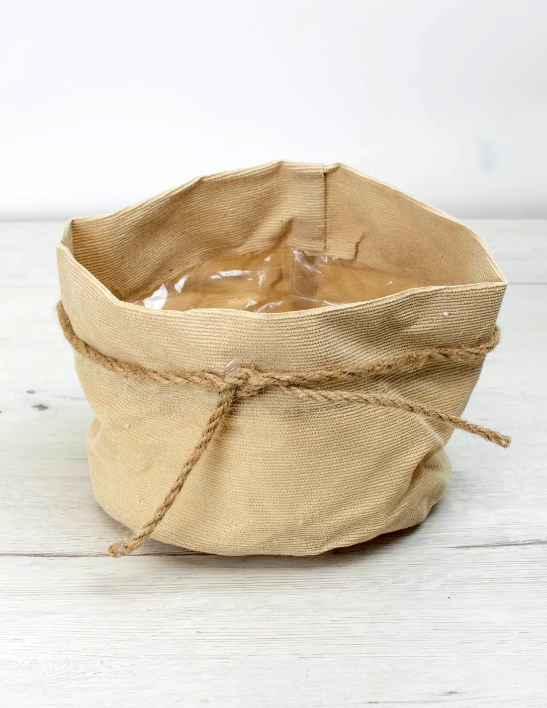 Cubremacetas de tela y plástico rústico con un toque de elegancia.