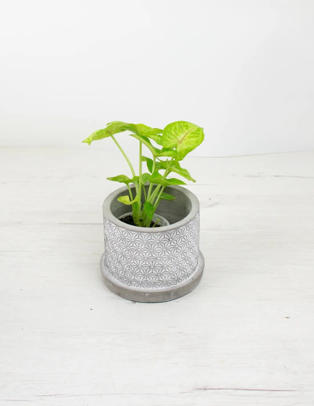 Para aquellos que buscan una solución práctica y estilizada para realzar la presencia de sus plantas, este cubremacetas de cemento gris es la elección perfecta. No solo es resistente a las inclemencias del tiempo, sino que también es fácil de limpiar, lo que garantiza que tu rincón verde siempre luzca impecable..