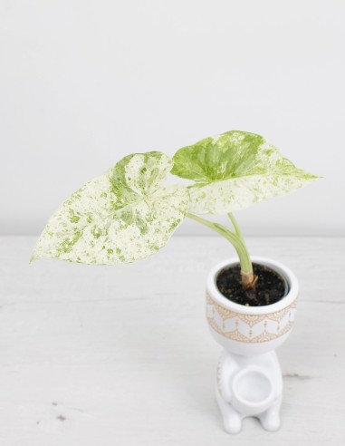 Cada Alocasia 'Camouflage' es especial, con patrones de color que varían en cada hoja, haciendo que cada ejemplar sea una obra de arte natural. Originaria de las selvas tropicales de Asia, esta planta es perfecta para añadir un toque de aventura y estilo tropical a cualquier espacio interior.