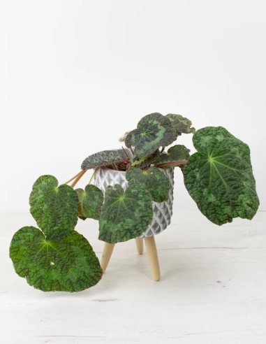 Aunque su apariencia es impresionante, su cuidado es tan accesible como su belleza. Esta begonia prefiere ambientes cálidos e iluminación indirecta. Colócala en un rincón luminoso pero alejada de la luz solar directa para que sus hojas conserven sus tonalidades vibrantes. En cuanto al riego, mantén el sustrato ligeramente húmedo, evitando encharcamientos..