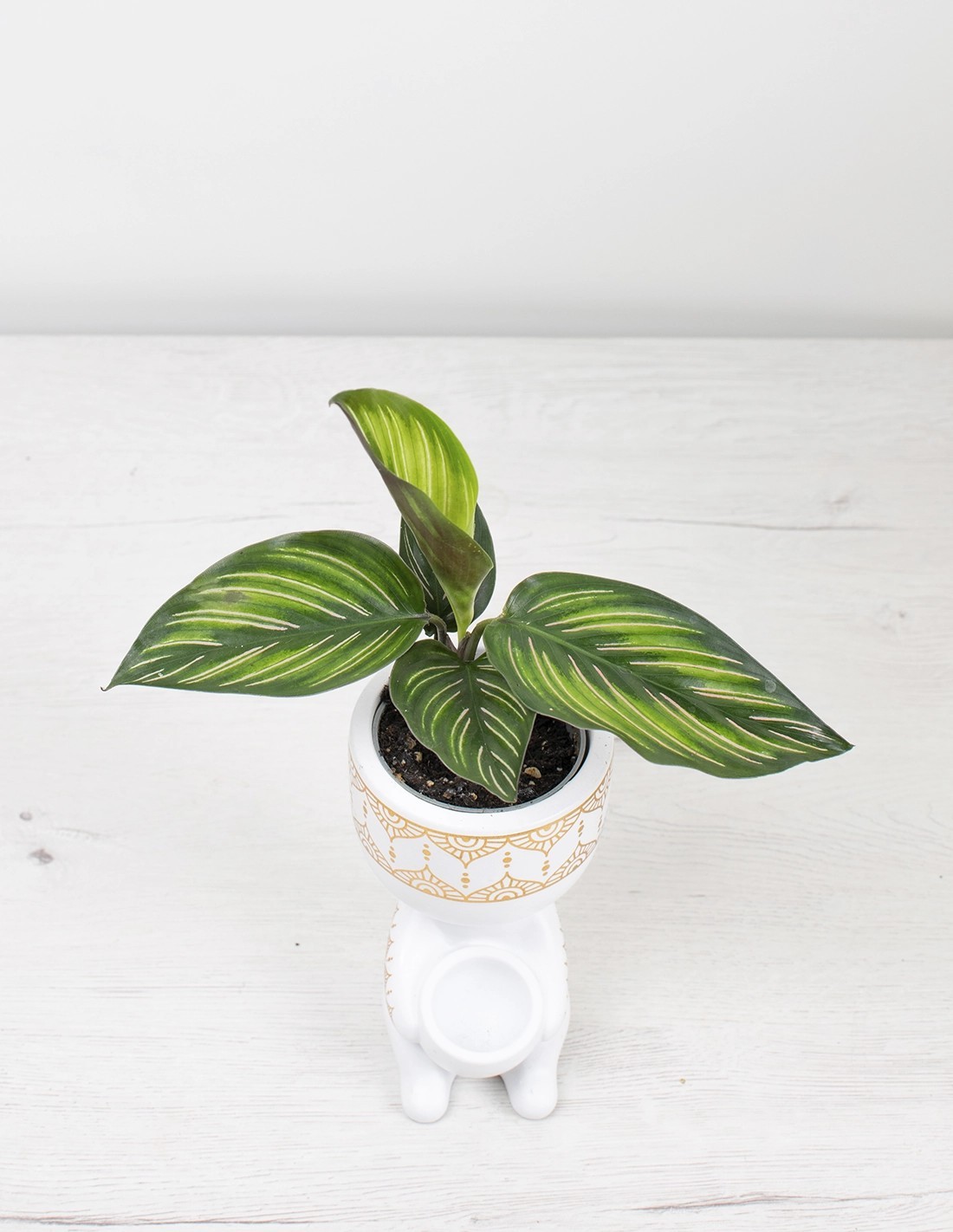 Aporta elegancia a tu hogar con la Calathea sanderiana, una planta de interior exótica y decorativa, conocida por sus hojas con elegantes patrones rosados y verdes.